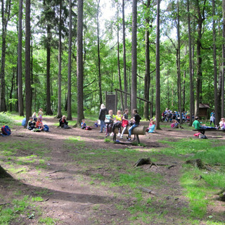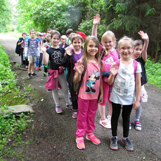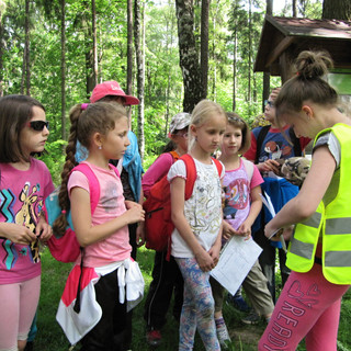 Paní učitelky pro nás připravily okruh, který nás zavedl až do lesoparku nad hotelem Merkur. Na startu okruhu jsme dostali mapku se zakreslenými stanovišti. Stanovišť bylo na trase 8, na každém z nich jsme nejprve museli ve skupinkách rozluštit název daného stanoviště. Luštění bylo zajímavé, pokaždé byl klíč k rozluštění jiný, například „morseovka“, šifry, příklady atd. Názvy skrývaly jména pohádkových a filmových postav, třeba Elsa, Žeryk, Alvin, Šmudla…