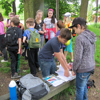 Když jsme splnili „vstupní“ část, mohli jsme začít s plněním hlavního úkolu – hod kroužků na cíl, orientace v terénu podle buzoly, zpěv písniček na daná slova, počítání matematických čtverců a pyramid, přejít poslepu lano, sběr víček v daném prostoru, sestavování loga naší školy (puzzle) a poznávání přírodnin.